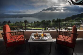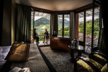 Entre lac et montagnes, cet hôtel de charme aux couleurs chatoyantes compte 52 chambres, deux restaurants, une belle terrasse, un magnifique parc arboré, une piscine extérieure et un Spa. Le décor de style Art-déco baigné de lumière, allie luxe et élégance. Les chambres aux teintes chaudes où les ocres et les marrons s’amusent avec les dorés, sont lumineuses, chaleureuses et spacieuses. Elles sont dotées d’une petite terrasse avec vue sur le lac d’Annecy et le Mont Veyrier. Certaines sont orientées vers la nature et la forêt.