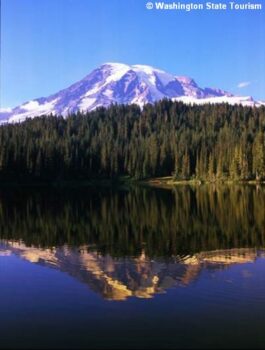 Né durant l’ère glacière, il y a 2 ou 3 millions d’années, avec ces 4392 mètres, c’est le plus haut sommet de la chaîne des Cascades. Le Mont Rainier, volcan endormi, dont la première éruption remonte à environ 700 000 ans, et la dernière en 1982 domine tous les pics avoisinants. En 1792, le capitaine Georges Vancouver lui donna le nom de son ami l’amiral Rainier. La première escalade du mont remonte à 1870 et aujourd’hui plus de 10 000 grimpeurs ,chaque année, tentent son ascension dont certains alpinistes s’entraînant avant de partir à la conquête de l’Himalaya. Gravir le Mont Rainier c’est comme gravir un glacier. Dans le Parc du mont Rainier la faune est abondante : cerfs à queue noire, élans, chèvres des montagnes, gazelles et marmottes peuplent les prés subalpins. Le parc national compte une soixantaine de lacs, plus de quarante glaciers et presque autant de chutes d’eau. Des centaines de kilomètres de sentiers pédestres s’offrent à vous. On ne manquera pas le Crater Lake. Le Mont Saint Helens lui culmine à 2555 mètres après l’éruption du 18 mai 1980. En effet le flanc nord de la montagne explosa faisant place à un cratère de 1,6 km de large sur 3,2 km de long et 670 mètres de profondeur. De nos jours, des fumerolles riches en souffre rappellent que ce dernier demeure un volcan actif.