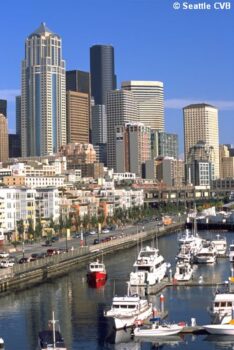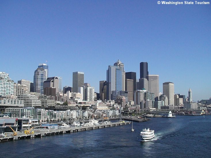 Ville portuaire moderne lovée dans un écrin de verdure entre la mer et une chaîne de montagnes aux neiges éternelles (Les Cascades), Seattle est comme une grosse île étroite coincée entre le Puget sound à l’ouest (un bras de mer), le paisible lac de Washington à l’est, le lac Union et le canal au nord. Bordée donc d’eau, de lacs, d’îles et de montagnes, de forêts, la ville est très ouverte sur la nature. A Seattle, un rayon de soleil sur la baie suffit pour voir ses habitants faire du sport, naviguer ou skier à une heure de la maison. Ville cosmopolite, Seattle a donné naissance au hard rock, au grunge à la fin des années 80 ainsi qu’à deux célèbres entrepreneurs qui marquent la vie économique internationale : Bill Boeing, l’avionneur et Bill Gates, celui de Microsoft, l’homme le plus riche du monde dont la société est basée à Redmond à l’est de Seattle. Les hommes d’affaires quand ils ne prennent pas le ferry ou la bicyclette pour aller travailler on les retrouve au cœur des pôles touristiques et des curiosités du Downtown. Dans le quartier de Queen Anne où l’on admire les plus belles maisons d’inspiration victorienne, dans le Kerry Park d’où on a une vue panoramique splendide sur le centre, avec la Space Needle (aiguille de l’espace) et à l’arrière plan le mont Rainier.