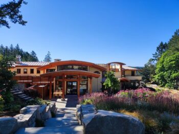 Saltspring, située à proximité de l’île de Vancouver, du côté est, abrite de nombreux artistes, sculpteurs et musiciens. On peut la rejoindre en quelques minutes par hydravion de Vancouver. En arrivant à Lightwater Cove d’emblée on est séduit par la beauté sauvage des lieux. L’établissement a ouvert ses portes au printemps 2022.