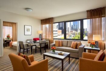 Ouvert depuis 2003 et parfaitement situé dans le secteur central de Melbourne, l’hôtel Somerset On Elizabeth **** a été rénové en 2012. Il se trouve à proximité de la rue principale Bourke Street et du Mall (accès direct au grand magasin Myer), des marchés de Queen Victoria et de l’Hôtel de Ville. Les 135 confortables chambres de l’établissement proposent un minibar, la télévision par satellite, un climatiseur individuel, la télévision par câble avec films à la demande, Wifi… Les chambres sont équipées d’une douche séparée dans les salles de bains des suites. L’hôtel bénéficie d’un centre de fitness. Les appartements sont élégamment meublés avec des équipements modernes. Les cuisines sont entièrement équipées et comptent un lave-vaisselle. Adresse : 250 Elizabeth St, Melbourne VIC 3000, Australie, tél. +61 3 8665 8888. Site web : www.somerset.com
