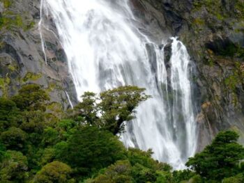 Les bateaux vous emmène au plus près des cascades qui égrènent le parcours, jusqu’à en être mouillé. Par temps de pluie des cascades s’improvisent de partout. Et quand le soleil brille, les plus imposantes subsistent et offrent à nos regards des arcs en ciel. A la pointe Sainte-Anne, on remarque à 27 mètres au-dessus du niveau de la mer le phare automatique du Milford Sound avant d’arriver sur la pointe Dale marquant l’entrée fjord. Attraction très attendue des passagers, la brève halte à Seal Rock, l’un des quelques endroits où les otaries à fourrure se reposent sur les rochers. Ces pinnipèdes habitent le fjord toute l’année. Autre point fort de la visite, les chutes Stirling – du nom du capitaine Stirling, l’un des premiers explorateurs de la région – sont très spectaculaires après une forte pluie. Au retour de la promenade, un arrêt est prévu sur la crique Harrison. Au début du 19e siècle, il s’agissait du seul mouillage naturel du fjord. Il a longtemps été utilisé par les baleiniers et chasseurs de « phoques ». Aujourd’hui, la crique abrite le Centre de Découverte de Milford, l’observatoire sous-marin et le point de départ d’excursions en kayak.