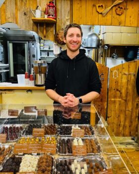 Le voisin de Gégé est jeune, d’ailleurs il affiche ses réseaux sociaux -google, facebook, instagramme – souriant, accueillant mais ne pas s’y tromper, il a de l’expérience, celle acquise en Australie, puis à Genève où il occupe pendant 6 ans le poste de chef pâtissier à l’Hôtel d’Angleterre *****, avant de revenir dans ses montagnes et de reprendre la boutique de son beau-père, « Au délice chocolaté », où il s’attache à faire perdurer le savoir-faire familial.