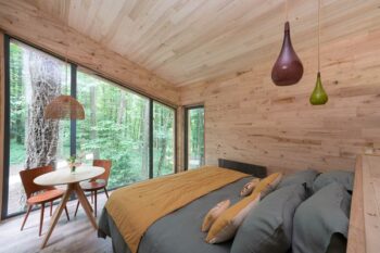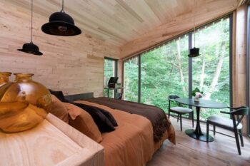 Les deux cabanes sont installées sur pieds et au milieu des arbres. Ici, on ne vit pas dans des abris à la Robinson Crusoé. Non, tout est luxueux. La clientèle visée vient du Grand Ouest majoritairement ou elle est locale. Elle est à la recherche d’une nuit inoubliable pour fêter un anniversaire – par exemple. Côté services, des massages sont proposés à la carte au sein des cabanes… une occasion de plus pour se relaxer et déconnecter !