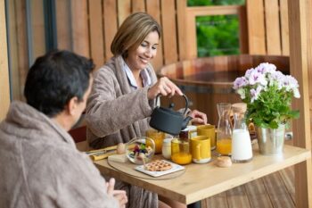 Annabelle et Antoine Baron, passionnés par la nature et les chevaux, ont acheté il y a dix ans une maison avec plusieurs hectares de terrain, juste à côté d’une forêt classée Natura 2000. Pour Antoine, il s’agissait d’un retour sur ses terres, lui qui avait été au lycée à L’Aigle. Pour Annabelle, originaire du Jura, elle a découvert cette région mais l’univers de l’hôtellerie, elle le connait depuis son enfance car ses parents étaient hôteliers-restaurateurs. Et pour être mieux armée, elle est sortie diplômée de l’Ecole Hôtelière de Lausanne pour suivre un parcours dans la restauration. Avec la création de Nuits Perchées, Annabelle, amoureuse des saveurs locales régale ses hôtes. En effet, les clients des cabanes peuvent déguster des dîners, brunchs ou petits déjeuners concoctés par ses soins. Elle fait varier les menus selon les saisons et ses mets se révèlent de grande qualité. Annabelle, c’est un peu la Cheffe à domicile !