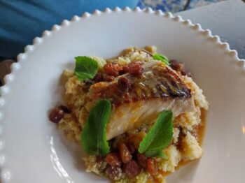 Le concept, c’est avant tout une cuisine traditionnelle revisitée, qui parle à tous y compris aux touristes étrangers. Les mets sont présentés dans des assiettes aux motifs champêtres. A la carte, une cuisine « bistrotière », revisitée avec audace et créativité. Un voyage gourmand où les produits du terroir normand sont à l’honneur et où la signature végétale du cuisinier s’exprime à travers des assiettes généreuses, souvent composées à partir du potager du Jardin des Plumes.
