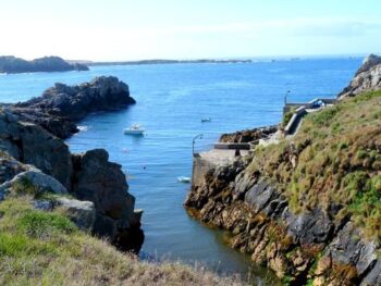 Y aller : Compagnie Maritime Penn ar Bed, tél. 02 98 80 80 80. Site web : www.pennarbed.fr – Traversée en 2h15 au départ de Brest avec escale au Conquet et à l’Ile Molène. En 1h15 au départ du Conquet.