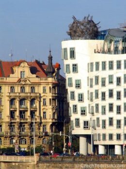 Le centre de Prague est typique avec ses ruelles en zig-zag et ses bâtiments de tous les styles architecturaux. On succombe très vite au charme de cette ville-musée à l’énergie débordante où se mêlent tous les styles, des cathédrales gothiques jusqu’aux exubérants immeubles estampillés Art nouveau, en passant par nombre de palais, des musées de toutes sortes, des passages secrets, des ruelles pavées, des jardins… mais aussi la jolie presqu’île de Kampa où fut tourné quelques scènes de célébrissime “Amadeus” de Milos Forman. Ou encore, non loin, face à l’ambassade de France, le mur “graffité” – acte de résistance à l’époque noire du pays- qui représente John Lennon croqué avec des couleurs psychédéliques le jour de sa mort. Le Pont Charles, édifice emblématique de Prague, a été bâti en style gothique en 1347. Il est encadré par deux tours sombres de style gothique. Sur les parapets du pont, des dizaines de statues de pierre de style baroque font une haie d’honneur aux promeneurs de passage. Il fut longtemps le seul pont jusqu’en 1741 à franchir la Vltava. A son extrémité se trouve la Tour du pont de la Vieille Ville. Et puis, non loin du majestueux pont Charles, on s’arrête volontiers devant une incroyable Maison dansante, œuvre récente du célèbre architecte américain Franck Ghery composée de deux édifices mêlés tels des danseurs et surnommés immeuble Fred (Astaire) et Ginger (Rogers) au sommet duquel est juché “La Perle de Prague”, un étonnant restaurant où l’on peut dîner et écouter un concert. Notre regard embrasse alors toute la ville et le célèbre château qui brille de tous ses feux… le plus grand château du monde (sur 4 ha) selon le Guinness Book. Un lieu magique. Immense et Siège de la présidence de la République.