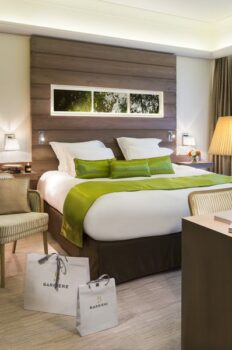 C’est en 2012, que le Groupe Barrière a décidé d’élargir la gamme de loisirs autour de son casino de Ribeauvillé. Ainsi naissait un concept totalement novateur la construction d’un complexe de loisirs intégrés, autour des cinq métiers : le jeu, la restauration, le bien- être, l’hôtellerie et les spectacles. Le resort propose un hôtel 4 étoiles de 56 chambres dont 2 suites (extension possible à 90 chambres), un casino de 1 000 m2, un vaste espace balnéo de 3 600 m2 dont 550 m2 de bassins.Spacieuses et très lumineuses, les 56 Chambres et Suites cultivent un style épuré chic ancré dans la beauté de la nature environnante. Bois brut, photos de forêt, mobilier design, tonalités minérales, satin vert ou orangé, matériaux nobles s’affichent dans les chambres et les parties communes.