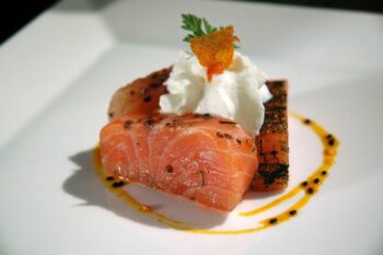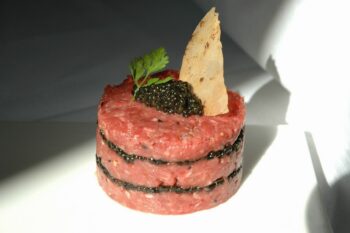 Pour déguster ces caviars, si vous êtes de passage à Paris, Petrossian vous accueille au “144” pour déjeuner ou dîner, du mardi au samedi. Avec une salle principale et deux salons privatisables, le “144” situé au-dessus de la boutique vous donne toute latitude pour organiser des repas haut de gamme en toute discrétion. Rougui Dia et son équipe proposent une cuisine mêlant modernité et intemporalité. Cela permet de goûter à l’ensemble des spécialités Petrossian, mais pas seulement ! Dans ce cadre intimiste, vous savourez un repas convivial entre amis ou en amoureux. La base de la cuisine réside évidemment dans le caviar, mais bien d’autres délices sont à la carte du restaurant : le foie gras poêlé, les ravioles de langoustines à la coco, les noisettes d’agneau rôties aux asperges… Petrossian a voulu rendre hommage à la cuisine russe à traver un Menu découverte, avec un assortiment de dix-huit plats et desserts différents. Ces plats varient au gré des saisons et des arrivages. A titre d’exemple voici de quoi vous mettre en appétit.