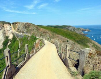 Sercq souvent surnommée la paisible, la sereine et la verdoyante se compose de deux parties distinctes communément appelées la petite et la grande Sercq. Elles sont reliées par “la Coupée”, un isthme étroit qui ne fait que 3 mètres de large bordé des deux côtés par une pente vertigineuse de 80 mètres. Un site immortalisé par une toile de William Turner et qui fut fréquenté notamment par Victor Hugo lors de son exil à Guernesey. Avant 1900, il n’existait aucune barrière de sécurité et les enfants traversaient le passage à quatre pattes pour éviter de tomber. La totalité de l’isthme est, aujourd’hui, couvert par un étroit chemin bétonné, construit en 1945 par des prisonniers de guerre allemands. De cet endroit, on admire un littoral exceptionnel. En repassant par le bourg, ne manquez pas une visite de la Seigneurie, dont le corps principal date de 1675 (demeure du Seigneur et de sa famille). On reste en admiration devant son jardin -entouré de murs le protégeant des tempêtes- et sa splendide roseraie.