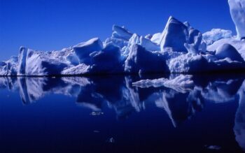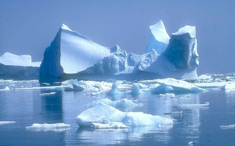 Les amarres largués, le chalutier laisse désormais un sillage d’écume blanche dans l’eau turquoise et de légères vagues bercent le canot qu’il tire. Il met le cap au large, abandonnant derrière lui la ville et de petits blocs de glace. Après seulement quelques minutes de navigation les icebergs se rapprochent inéluctablement, ils sont à portée de main. Il y en a de toutes les tailles et de toutes les formes plus étranges les unes des autres. L’un ressemble à un chien qui court, l’autre rappelle un porte-avions sur la passerelle duquel une mouette s’est substituée au pacha.