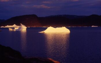Ils atteignent des hauteurs colossales et émergent jusqu’à 30 mètres au dessus des eaux tandis que la partie immergée plonge entre moins 300 et moins 350 mètres. Quel plaisir, alors, de se tenir fièrement sur le pont et de se laisser envahir par les perceptions. La scène se grave dans les mémoires de nombre de passagers et cet univers incommensurable impose à l’homme la plus grande modestie. Contrairement à une idée reçue l’iceberg, ce n’est pas de l’eau congelée. Il s’agit d’une neige comprimée, très dure qui enferme les gaz présents dans l’air au moment de sa formation. Les coloris vont du blanc au bleu marine taillé comme du cristal. Ces monstres pèsent des millions de tonnes et les pêcheurs s’en méfient. Car, en dépit de leur apparente immobilité, il faut rester attentifs à leurs mouvements… Jacky, notre capitaine, casquette de tweed visée sur la tête, jeans délavés, évoque sa jeunesse et ses vingt-six années passées dans cette contrée encore synonyme d’aventure. Il est assis devant sa barre et l’écran du radar ressemble à un ciel étoilé. Chaque point lumineux indique un iceberg. Grâce au radar, on peut zigzaguer parmi eux sans danger. Le ” Puttut ” se faufile toutefois avec prudence entre les blocs de glace. L’escapade est rythmée par un florilège d’émotions provoquées par cette nature, tour à tour, solennelle, intime et parfois dramatique.