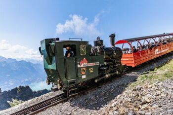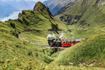 Pour embarquer à bord du train, rendez-vous à la gare du Rothorn de Brienz lovée au bord du lac. Le train monte de façon abrupte à travers une forêt puis il traverse des parois rocheuses et des prairies alpines sur 7,6 kilomètres. Le plus vieux chemin de fer à crémaillère de Suisse crache et souffle. Onze locomotives à vapeur de trois générations circulent chaque été sur les rails. Le parcours jusqu’à la crête du Brienzer Rothorn est une vraie expérience. Le train serpente dans la forêt puis dans les Alpages ce qui garanti de sentir l’air frais de la montagne. Au fur à mesure que le convoi grimpe, le panorama devient de plus en plus époustouflant.