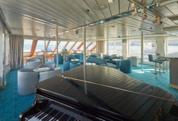 On apprécie ce petit paquebot de 124 mètres de long à faible tirant d’eau. Parce qu’il est à taille très humaine et qu’il est largement ouvert sur l’extérieur. Pas de doute, il règne à bord une ambiance chaleureuse et intime. Ses 113 cabines et suites répondent aux aspirations des amoureux des croisières de grande tradition et des amateurs du grand large. Toutes sont spacieuses, lumineuses grâce à la présence de doubles hublots, de sabords ou encore de balcons privés.