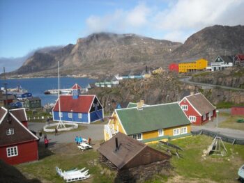 Jaune, rouge, mauve, verte ou bleue telles sont les couleurs des coquettes maisons en bois accrochées aux flancs des collines. Le débarquement se fait par bateaux pneumatiques puis chacun déambule à pied dans le quartier du petit port. On s’arrête volontiers devant l’église de granit entourée de maisons de tourbe et le musée qui rassemble des expositions consacrées, entre autres, aux momies de Qilakitsoq.