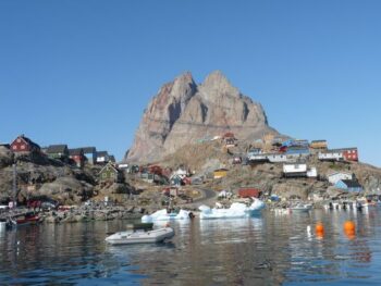 Tôt le matin, les premiers passagers sortent de leur sommeil pour ne rien manquer de l’arrivée à Sisimiut, blottie au pied d’un grand rocher au nord du Cercle Polaire. Fondé en 1756, le port de Sisimiut fut longtemps un port baleinier et de commerce. Par sa position, 100 km au nord du Cercle polaire, le port est considéré comme le point libre de glaces le plus septentrional du Groenland de l’Ouest. Il s’agit du plus grand centre national de la pêche à la crevette après avoir été un important port d’échanges commerciaux entre le Nord et le Sud.