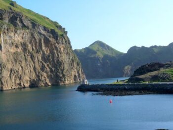 On profite d’une paisible navigation puis, au petit matin, on distingue déjà l’archipel formé par des éruptions volcaniques sous-marines il y a plus de 10.000 ans. Plus récemment, l’Île de Surtsey a émergé de la mer en 1963. Un pilote vient de rejoindre la passerelle de l’Ocean Diamond pour aider le navire à rejoindre le port encaissé de l’île Heimaey -la seule île habitée de l’archipel- . Celle-ci fut victime d’une éruption violente en 1973.