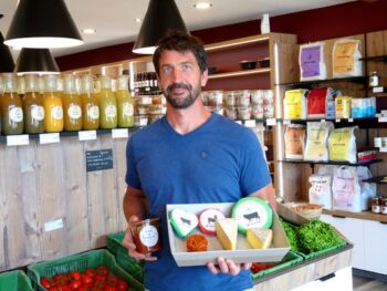 Issu d’une famille d’agriculteurs, Alexandre fait partie de la nouvelle génération d’agriculteurs : innovante et militante. A la fois ancré dans la tradition de l’agriculture locale (montée en alpage, qualité et méthodes de fabrication des produits, gestion des champs et du foin…), il est aussi pleinement conscient de l’évolution du métier et des attentes des clients : la diversification via l’intégration des brebis, l’engagement environnemental via l’obtention de la mention « Haute Valeur Environnementale » et le « bio » pour la viande bovine. Bien décidé à moderniser l’activité et à favoriser la distribution directe, il a fait notamment installer un distributeur automatique de produits de la ferme et plus récemment une vaste épicerie fermière.