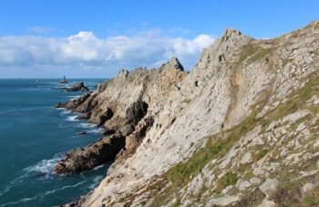 A partir d’Audierne, on peut gagner rapidement la Pointe du Raz sculptée par l’océan et les vents. Classée “Grand Site de France”, elle s’élève à quelque 70 mètres de hauteur. Face à elle se dresse le phare carré de l’îlot de la Vieille, allumé en 1887 et qui fut automatisé en 1995. Au-delà des roches le panorama s’ouvre sur le large et permet par temps clair de voir l’île de Sein et le phare d’Ar Men. L’île se dessine très plate, à 8 kilomètres d’ici. Les façades colorées des maisons semblent comme flotter dans la mer. Sein est aussi connue en raison d’un fait marquant : lors de l’appel du général de Gaulle et de la France Libre du 18 juin, des habitants sont partis le rejoindre.