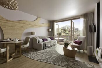 Lorsque vous arrivez à la porte du domaine, une hôtesse vous tend une enveloppe à notre nom avec bracelets-badges électroniques. Grâce à ce sésame, vous accédez à votre hébergement. On compte 3 catégories : Cocon VIP, Country Premium ou Clan Comfort. Situés au cœur du village ou en bord de lac, tous les appartements et les cottages comprennent un grand living ultra-cosy, une décoration conviviale et chaleureuse, un mobilier design… et une terrasse en teck s’ouvre sur l’extérieur. Les appartements et cottages Cocon VIP, offrent un écrin de bien-être, de douceur et de raffinement. Le bois, la pierre et le velours, l’espace de vie évoque la forêt. Côté chambre, suspensions en bois, plaid en fausse fourrure, oreillers en velours et tables de chevet en imprimé reptilien. La salle de bain est baignée de lumière et d’un zest de sophistication. On peut parler d’un véritable spa privatif. Dans un décor blanc, la douche massante et le bain bouillonnant invitent au bien-être et à la relaxation avec une vue panoramique sur la nature.