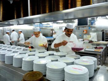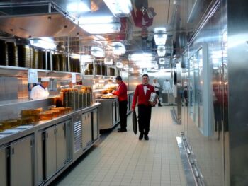 A proximité du casino, sur le pont 5, se trouve le restaurant gastronomique « Samsara » tourné vers la cuisine Pacifique, et le Club restaurant réservé aux passagers des suites (les autres passagers peuvent y réserver un dîner), un espace élégant et convivial où l’accent est mis sur la qualité des ingrédients. Ces dernières années, Costa a largement investi sur la formation de ses équipages. Italiens, Ukrainiens, Philippins, Indonésiens, Dominicains… Sur un bateau, une soixantaine de nationalités se côtoient, formant, sur le Diadema, un équipage de 1253 personnes. La compagnie anime des écoles aux Philippines, en Indonésie, au Pérou, au Brésil et bien sûr en Italie. Pas un membre d’équipage ne monte à bord sans avoir reçu une formation. Les chefs livrent leur botte secrète pour confectionner les meilleurs plats traditionnels des régions italiennes
