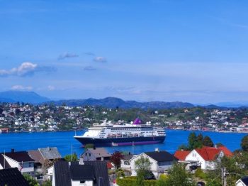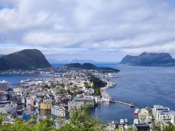 Lorsque le Renaissance approche d’Ålesund, située sur la côte ouest, le navire se faufile à travers un magnifique bras de mer avant de rejoindre le quai en centre-ville. Le cadre est spectaculaire. Ålesund se caractérise par une architecture Art Nouveau unique. En effet, après un incendie dévastateur en 1904, la ville fut reconstruite dans ce style distinctif, avec des bâtiments ornés de flèches, de tourelles et de détails décoratifs. On ne manque pas de rejoindre l’église luthérienne puis de marcher vers le bassin Alesundet où mouillent quelques vieux gréments. En suivant Keiser Wilhems gate, puis Korsegata, on atteint un grand escalier qui mène à Fjellstua Aksla, le point de vue panoramique. 418 marches à gravir. Et de là, on comprend bien qu’il y a de l’eau partout, et quelques terres qui flottent.